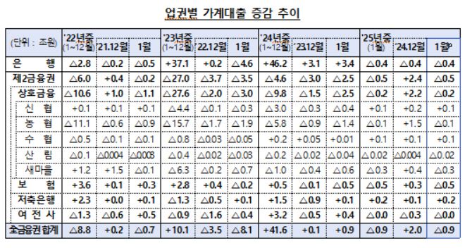 특히 1월에는 은행권의 대출 문턱이 높아지면서 제2금융권으로 쏠리던 가계대출도 줄었다.