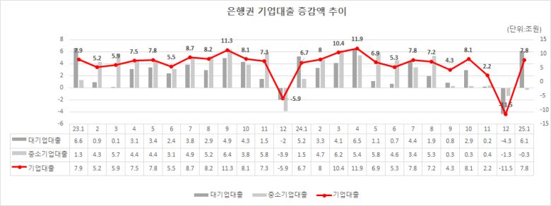 박 차장은 "대기업은 연말 재무비율 관리를 위해 일시 상환됐던 한도 대출이 재취급되며 증가했다"며 "여기에 대기업과 중소기업 모두 설 명절 자금 수요가 늘며 대출이 증가했다"고 설명했다.