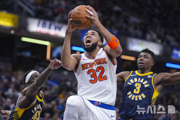 [인디애나폴리스=AP/뉴시스] 미국프로농구(NBA) 뉴욕 닉스의 칼 앤서니 타운스. 2025. 2. 11. |
