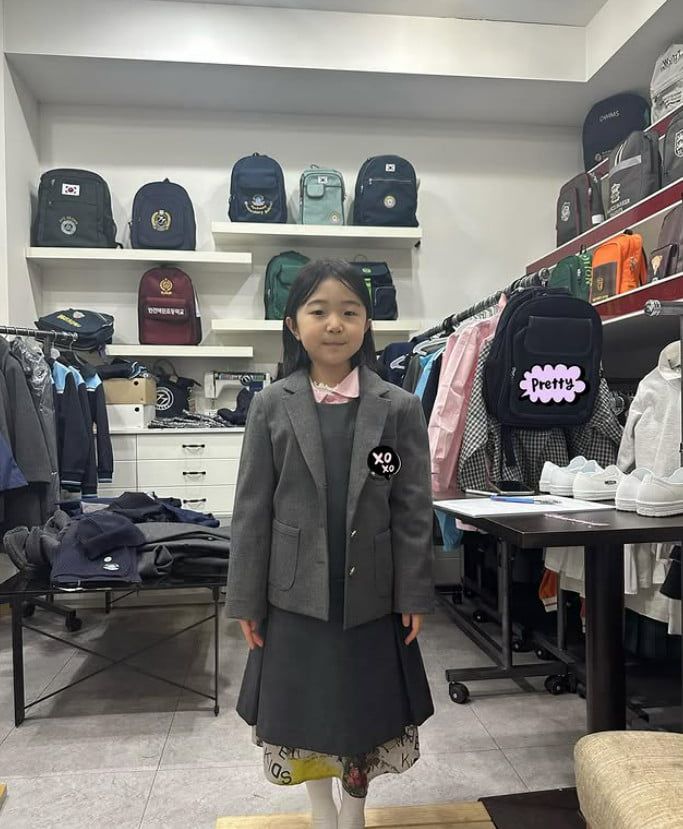 공개된 사진 속에는 이지혜의 첫째 딸 태리가 초등학교 입학을 앞두고 교복을 맞춘 모습. 이에 이지혜는 믿기지 않는 듯한 반응을 보였다.