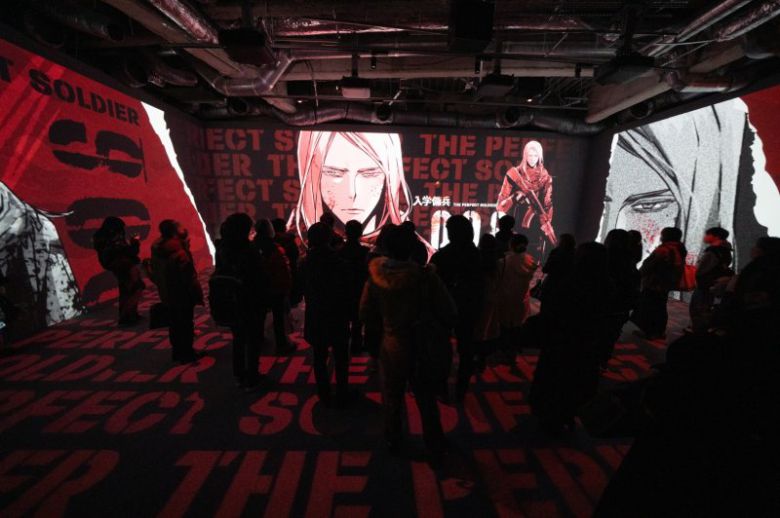 일본 도쿄의 라인프렌즈 스퀘어 시부야에서 열린 웹툰 '입학용병'의 첫 팝업스토어가 성황리에 열렸다. 지하 1층의 '미디어존'은 벽면과 바닥을 감싸는 대형 영상과 사운드를 통해 방문객이 '입학용병' 속 한 장면에 들어온 듯한 몰입감을 선사한다. 네이버웹툰 제공 |