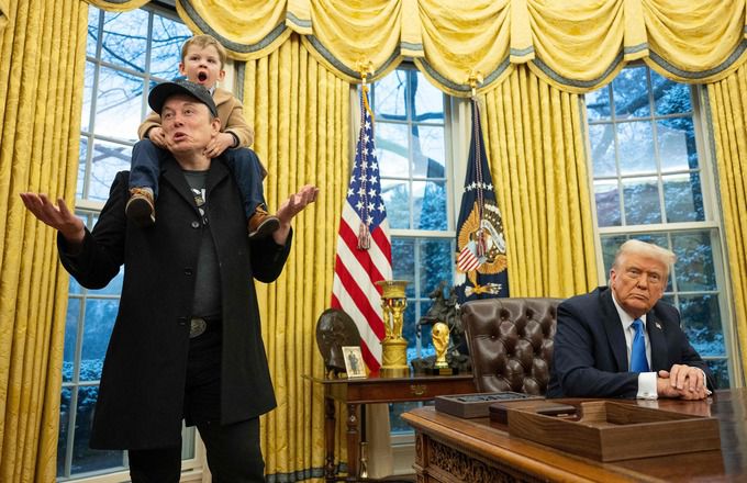 11일(현지시간) 미국 뉴욕타임스(NYT) 등에 따르면 머스크 CEO는 이날 워싱턴 백악관의 대통령 집무실에서 트럼프 대통령과 함께 현지 언론을 상대로 DOGE와 자신의 활동에 대해 설명했다. 머스크가 트럼프 정부에서 활동을 시작한 뒤 공식적으로 언론과 대면해 질문을 받고 응답한 것은 이번이 처음이다. DOGE와 자신의 역할을 둘러싸고 여러 논란이 제기되자 이를 정면 돌파하기 위한 자리로 검은색 마가(MAGA·미국을 다시 위대하게) 모자를 쓰고, 아들을 무동 태운 채 구조조정의 칼자루를 손에 쥐고 있는 ‘실세’다운 여유로움을 보여주며 등장했다.