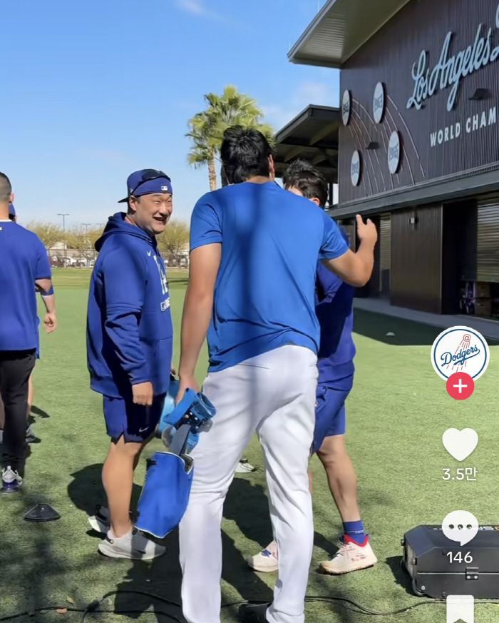 다저스 구단이 12일 공식 SNS 계정을 통해 공개한 짧은 동영상에서 두사람의 친밀함을 짐작할 수 있었다. 단거리를 전속력으로 달리며 주루 훈련을 하는 김혜성을 편한 복장의 오타니가 웃으며 지켜보고 있었다. 그는 전속력으로 달리는 김혜성의 모습이 인상적이었는지, 활짝 웃으며 다가갔고 곧이어 한국말로 "멋있어"라고 이야기 했다. 김혜성은 쑥스럽게 웃으며 "you are cool(너도 멋있어)"라고 답했고, 두 사람은 진한 포옹을 나누기도 했다. 김혜성의 통역을 맡고있는 담당자까지 모두 함께 기분 좋은 웃음을 터뜨린 장면이었다.