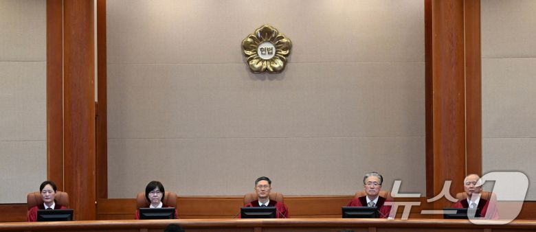 헌법재판관들이 11일 서울 종로구 헌법재판소에서 열린 윤석열 대통령 7차 탄핵심판 변론기일에 자리해 있다. 2025.2.11/뉴스1 ⓒ News1 사진공동취재단 |