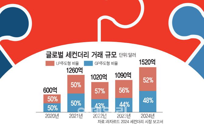 12일 글로벌 투자은행 라자르드가 낸 ‘2024 세컨더리 시장 보고서’에 따르면 지난해 글로벌 사모시장에서 이뤄진 세컨더리 거래 규모는 1520억 달러(약 221조원)를 기록했다. 이는 1090억달러(약 158조 5078억원)를 기록한 지난 2023년 대비 39% 증가한 수준으로 사상 최대다. 라자르드는 오는 2028년까지 세컨더리 거래가 2000억달러 이상의 규모로 성장할 것으로 내다봤다.