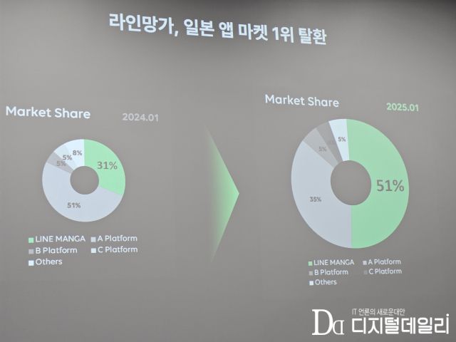 일본 시장에서 단일 만화 앱으로는 2인자라는 인식이 강했던 라인망가가 빠르게 성장하면서 플랫폼 사업자 1위를 향한 업계 관심도 높아지고 있다. 예컨대, 라인망가는 단일 앱으로 게임 포함 전체 앱 마켓 매출 1위를 달성한 작년 5월을 기점으로 상승세를 이어가고 있지만 연간 매출 1위 앱은 픽코마다. 김 대표는 "지난 4년간 과정을 통해 역전을 만들었다는 게 중요하다"며 "시장에서 함께 공생하고 파이를 키우는 데 집중하고 싶다"고 말했다.