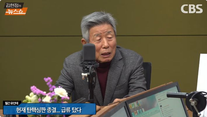 ◆ 유인태> 저는 지금 윤석열 대통령 입장은 지난 총선 때 조국혁신당 대표가 비법률적 방식으로 명예 회복을 하겠다, 이런. 그게 뭔 소린가, 희한한 소리다 했는데 지금 윤석열 대통령이 헌재에 임하는 거는 비법률적 방식으로 명예 회복을 하겠다. 그걸 좀 차용한 게 아닌가. 그러니까 재판은 어차피 이건 뻔한 거고 헌재 이거는.