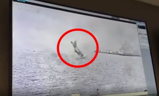 바다에 내리 꽂히는 항공기. 12일 오전 10시 15분경 샌디에이고 코로나도섬과 항구 사이의 바다에 추락한 미 해군 소속 EA-18G 그라울러 항공기. 레딧 캡처
