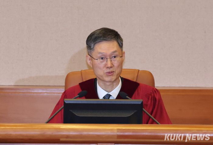 문형배 헌법재판소장 권한대행이 1월14일 서울 종로구 헌법재판소에서 열린 윤석열 대통령 탄핵심판 사건 첫 변론기일에서 발언하고 있다. 쿠키뉴스 자료사진