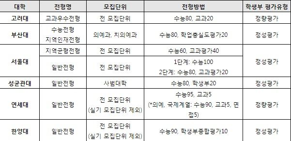연세대, 성균관대(사범), 한양대 정시에 학생부 도입