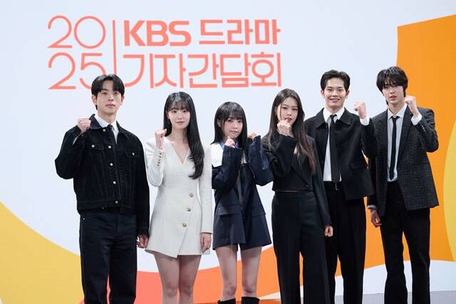 배우 김은호 전혜연 최예나 한성민 정민규 은찬(왼쪽부터)이 13일 오전 11시 30분 서울 영등포구 여의도동 한 식당에서 진행된 2025 KBS 드라마 기자간담회에 참석했다. /KBS |