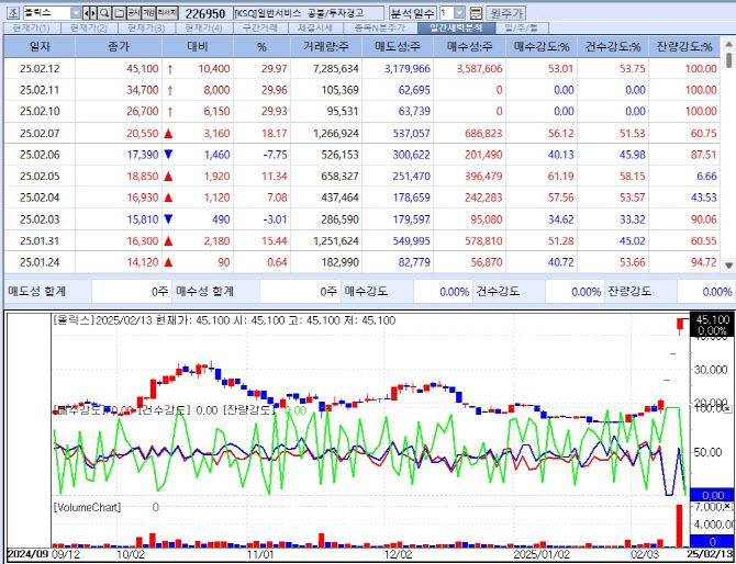 12일 올릭스 주가 추이 (자료=KG제로인 엠피닥터)