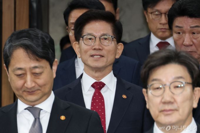 김문수 고용노동부장관이 10일 오전 서울 여의도 국회에서 열린 K-방산수출 지원을 위한 당정협의회에 참석하고 있다. 2025.2.10/사진=뉴스1 /사진=(서울=뉴스1) 이광호 기자 |