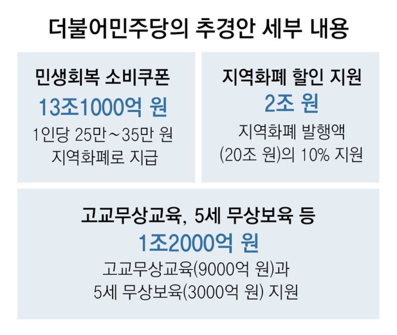 민생쿠폰 13조-지역화폐 2조… 이재명표 예산 절반 가까이 차지