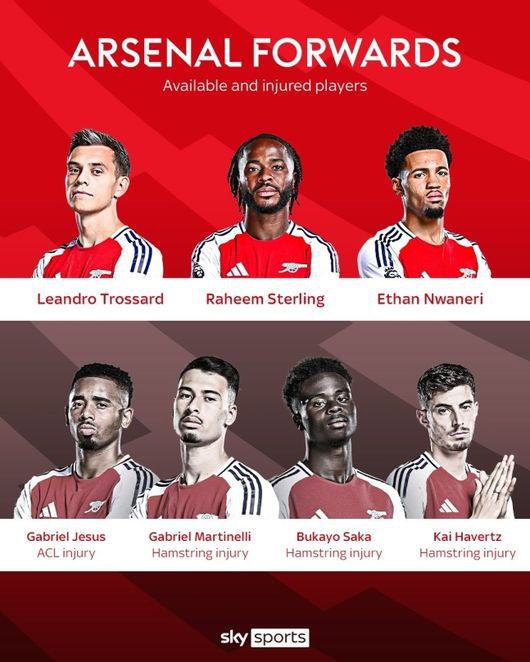 이미 '에이스' 부카요 사카와 측면 자원 가브리엘 마르티넬리가 햄스트링 부상으로 이탈했고, 제주스도 십자인대 파열로 시즌을 일찍 마감했다. 디 애슬레틱에 따르면 사카는 빨라야 3월에나 복귀할 예정이며 마르티넬리도 한 달 정도 자리를 비울 것으로 보인다.