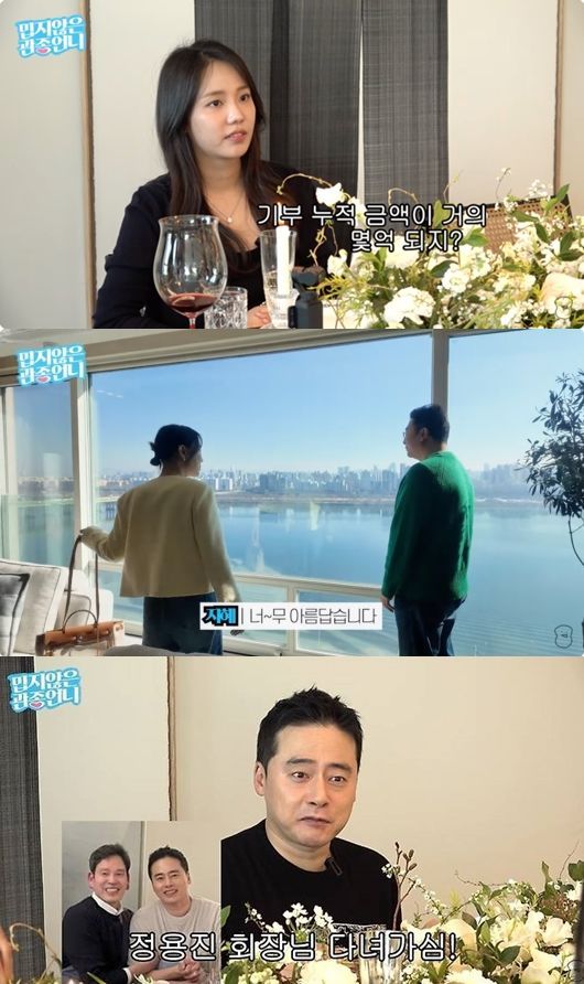 이상원은 "저희가 손님을 초대해서 맛있는 거 대접하는 걸 좋아한다"며 "오프 더 레코드로 정용진 회장님도 온다. 회장님들 다들 오고 싶어한다"고 말했다. 그는 정용진 회장이 실제 '관종언니' 촬영 후 다녀갔다고 밝혔다.