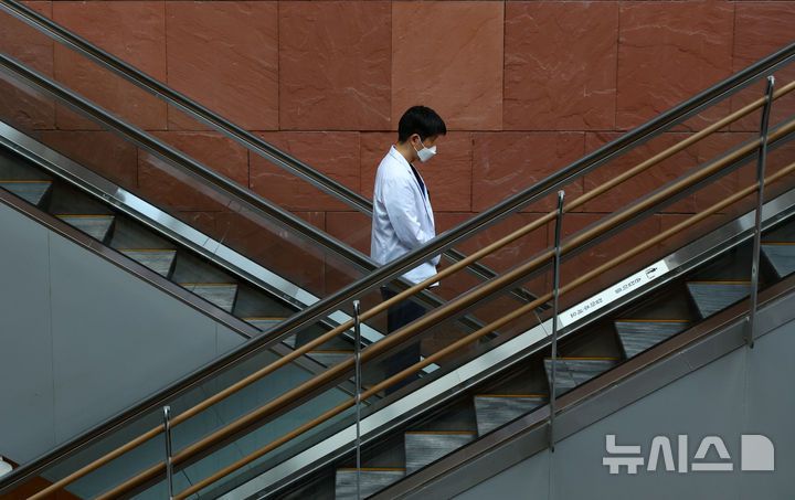 [서울=뉴시스] 황준선 기자 = 10일 서울 시내 한 대학병원에서 의료진이 이동하고 있다. 지난해 2월 정부의 의대 정원 증원 발표로 촉발된 의정 갈등이 1년을 맞았다. 의정 간 입장차가 큰 데다 탄핵정국까지 맞물리면서 대치 국면이 당분간 지속될 전망이다. 2025.02.10. hwang@newsis.com