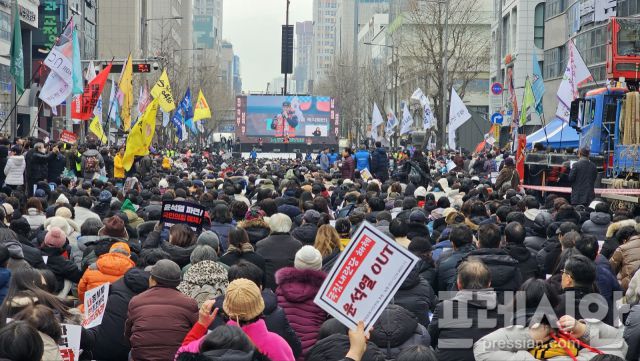 ▲광주 동구 금남로에서 광주지역 170여개 시민단체로 구성된 '윤석열 정권 즉각 퇴진·사회대개혁 광주비상행동'이 윤 대통령 탄핵 촉구와 내란 세력 척결을 위한 '제14차 '광주시민 총궐기대회'를 개최했다.2025.2.15ⓒ프레시안(백순선) |