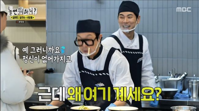 하하와 이이경은 일반 라면, 떡라면, 해장 라면을 맡았다. 라면에 따라 사용되는 면이 다르다는 점과 물의 양, 수프 양 등 업무 매뉴얼을 숙지한 두 사람은 쌀국수 코너와 경쟁해야 한다는 말에 승부욕을 불태웠다. 이이경이 온전히 라면 끓이기에 집중하고, 하하가 재료 소분과 고명, 손님 응대에 신경을 쓰는 등 분업으로 효율적으로 임하면서 업무는 원활하게 이뤄졌다. 직원들은 “A급이다”라며 두 사람의 실력을 칭찬했다. 하지만 하하는 손님들이 몰리자 “우동이 맛있다”고 유도해 웃음을 자아냈다.