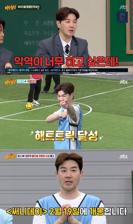 '써니데이' 팀과 '아는 형님' 팀의 긴장감 넘치는 풋살 경기도 펼쳐졌다. 정혜인의 패스를 받은 한상진은 그대로 골을 성공시키며 첫 득점을 이뤄냈고, 하프라인에서 강슛을 날려 추가 득점을 이뤄내는 등 뛰어난 운동 신경으로 경기를 하드캐리해 감탄을 자아냈다.
