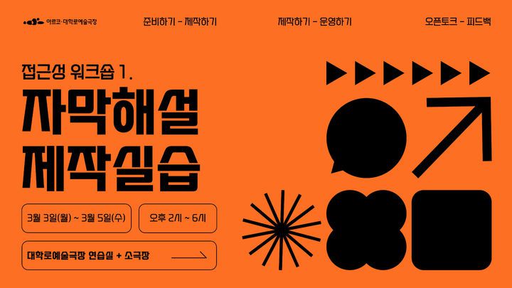 [서울=뉴시스]김주희 기자 = 한국문화예술위원회 아르코·대학로예술극장이 서울 종로구 대학로예술극장에서 다음 달 3일부터 5일까지 사흘간 공연예술인을 위한 접근성 워크숍 '자막해설 제작 실습'을 개최한다.
