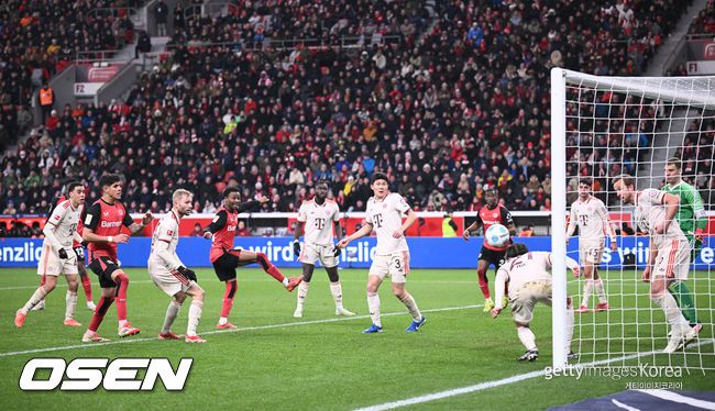 후반에도 레버쿠젠이 공세를 이어갔다. 후반 14분 코너킥 공격에서 김민재가 세컨볼을 멀리 걷어내지 못했다. 이를 텔라가 시저스킥으로 연결했으나 골문을 외면했다.