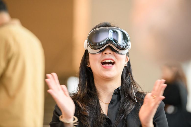 지난해 11월 서울 중구 애플 명동점에서 한 고객이 국내 출시된 '애플 비전 프로'를 체험하고 있다./애플 제공