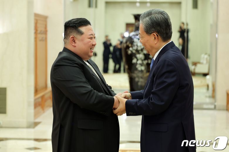 (평양 노동신문=뉴스1) = 북한 김정은 당 총비서와 중국 자오러지 전국인민대표대회 상무위원장. [국내에서만 사용가능. 재배포 금지. DB 금지. For Use Only in the Republic of Korea. Redistribution Prohibited] rodongphoto@news1.kr |