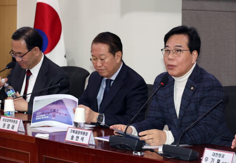 송언석 국회 기획재정위원장이 7일 서울 여의도 국회 의원회관에서 열린 ‘대한민국 경제 재도약을 위한 정책간담회 3탄-항공산업 경청회’에서 인사말을 하고 있다. 2025.02.07.[서울=뉴시스] |