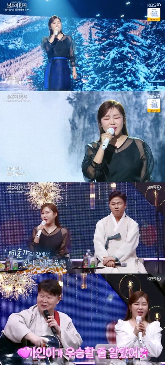 [OSEN=연휘선 기자] 가수 송가인이 국악을 전공한 친오빠와 함께한 무대로 ‘불후의 명곡’에 깊은 울림을 안겼다.