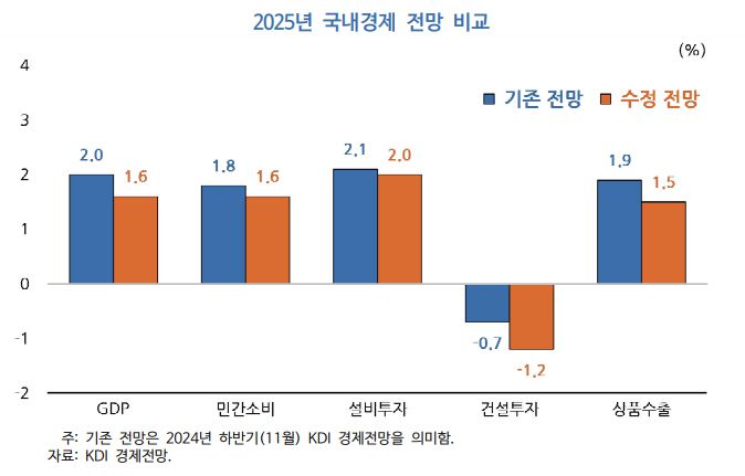 KDI 관계자는 "경기상황에 비해 높은 금리가 지속되고, 정국불안에 따른 심리위축이 더해지면서 내수는 부진한 상태"라며 "대내적으로 국내 정국 불안이 장기화되면서 경제심리 회복이 지연되는 경우 내수 개선이 제한될 가능성이 있다"고 말했다.