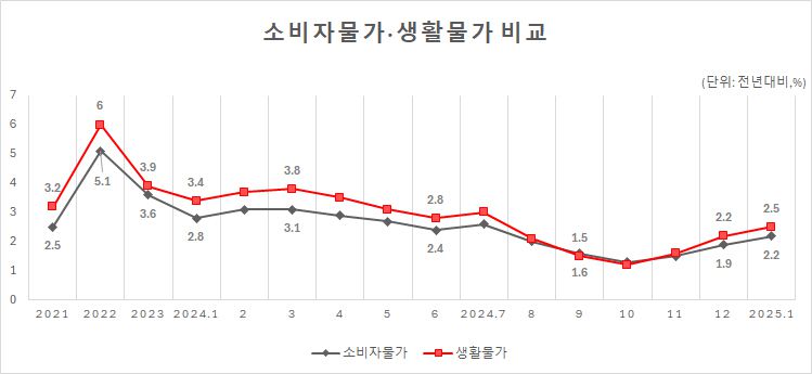 1월 생활물가지수 1년 전 대비 2.5% 상승