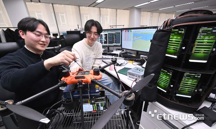 국내 통신장비사들이 다음달 스페인에서 열리는 'MWC 2025' 전시를 앞두고 5G 통신기술 점검에 박차를 가하고 있다. 주말 경기 성남시 이노와이어리스 연구원들이 드론, 로봇 등에 5G 모뎀을 탑재해 실시간 측정하고 원격 모니터링할 수 있는 'XCAL-Emb' 소프트웨어와 상공망 네트워크 측정용 드론패키지 'XCAL-Air'를 테스트하고 있다.