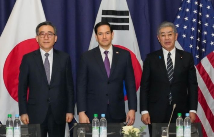 한미일 외교장관회담에서 채택한 공동성명에서도 "유엔 안보리 결의에 따른 북한의 완전한 비핵화에 대한 확고한 의지를 재확인했다"는 내용이 명기됐다.