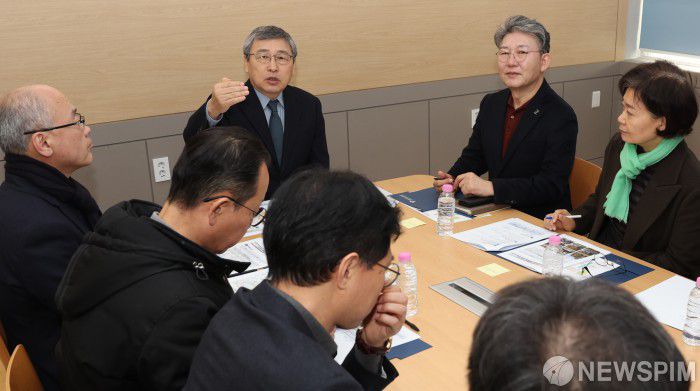 [서울=뉴스핌] 양윤모 기자 = 정근식 서울시교육감이 16일 오전 서울 성동구 무학여고 화재사고 발생 현장을 점검한 뒤, 본청 간부 및 학교 관계자들과 함께 교육활동 정상화를 위한 긴급 대책회의를 하고 있다. [사진=서울시교육청]  2025.02.16 yym58@newspim.com