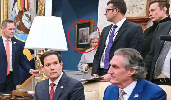 도널드 트럼프 미국 대통령이 집무실 앞에 2023년 기소 당시 찍은 머그샷(mugshot·수용자 기록부용 사진)을 액자로 만들어 걸어둔 정황이 언론에 포착됐다.