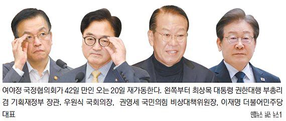 16일 국회에 따르면 오는 20일 오후 5시 여야정 국정협의회가 개최될 예정이다. 회의에는 최상목 대통령 권한대행 부총리 겸 기획재정부 장관과 우원식 국회의장, 권영세 국민의힘 비상대책위원장, 이재명 더불어민주당 대표가 참석한다. 여야정이 지난달 9일 국정협의회 참석자를 합의한지 42일만이다.