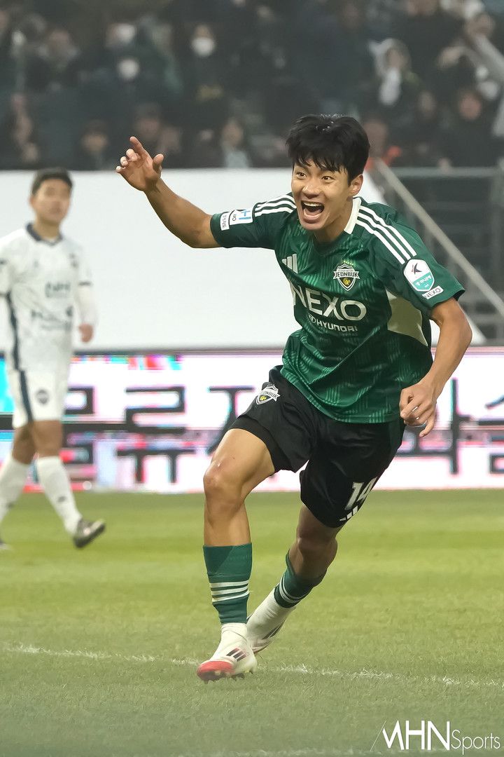 김천은 전반 13분 오른쪽 측면에서 이동경의 얼리 크로스를 유강현이 쇄도해 오른발로 밀어넣으면서 팀의 이번 시즌 첫 골을 기록, 1-0 리드를 잡았다.