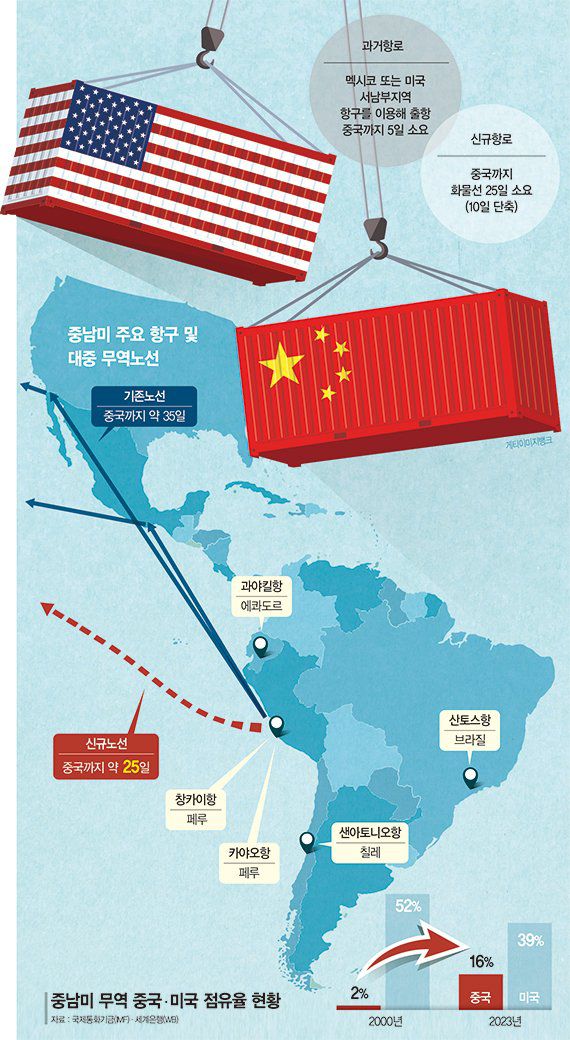 무엇보다 2000년 이후 중국이 구축해 놓은 중남미와의 단단한 경협 관계는 이미 되돌리기 어렵다. 중국은 항만·통신 등 사회간접시설 투자협력사업을 통해 영향력과 존재감을 키워왔다. 국제통화기금(IMF)에 따르면 남미 12개국의 대중 무역액은 지난 2000년에 비해 40배 증가한 3229억달러(466조1707억원)였다.