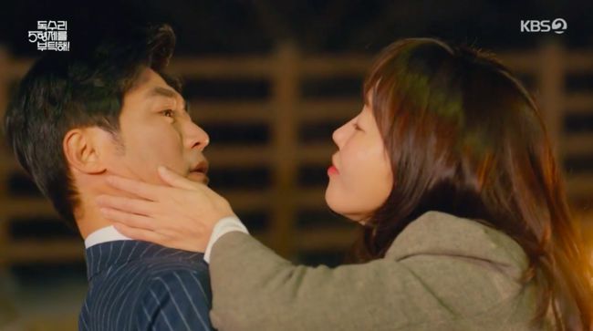 16일 방송된 KBS2 주말드라마 ‘독수리 5형제를 부탁해!’에서는 마광숙(엄지원 분)이 한동석(안재욱 분)을 사별한 남편으로 착각해 입을 맞추려 했다.