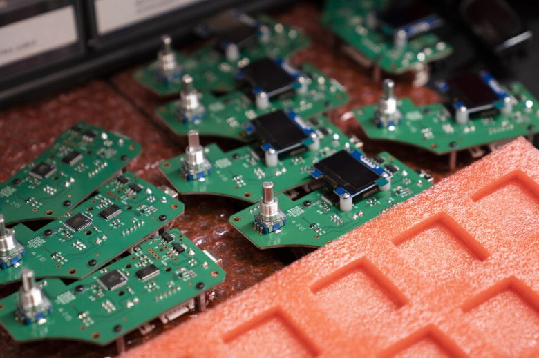 반도체 칩들이 작업대 위에서 조립 및 정리된 후, 2021년 4월 28일 수요일 뉴욕 브루클린 지역에 있는 브루클린 해군 조선소에서 열린 나노트로닉스 제조 센터 개소식의 테이프 커팅 행사에 맞춰 준비되어 있다. 뉴욕/AP 연합뉴스