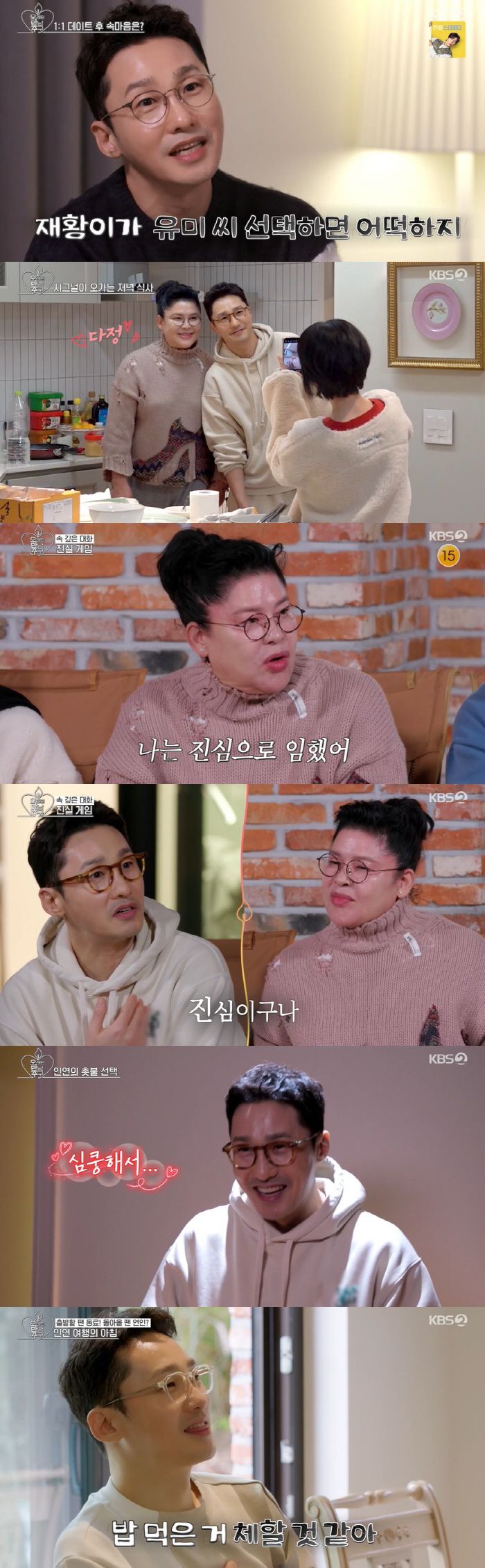 한편 서로 마음에 드는 상대의 초에 불을 켜는 시간. 황동주를 선택한 이영자는 "처음에는 장난인가 했는데 그 사람의 진심을 본 거 같다. 뭘 해도 정말 최선을 다하는 모습에 진솔함을 느꼈다"고 말했다. 황동주도 이영자를 선택하며 "아까 땀 닦아줄 때 시선을 어디에 둘지 모르겠고 심쿵했다"고 밝혔다.