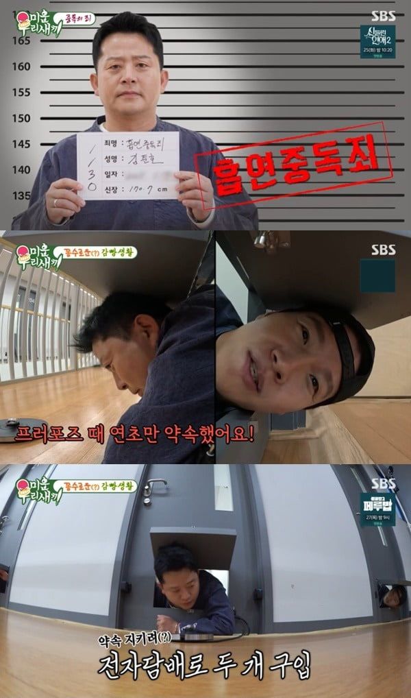 지난 16일 방송된 SBS 예능 '미운 우리 새끼'(미우새)에서는 김승수, 김준호, 김종국이 '중독의 늪'에서 빠져나오기 위해 1.5평짜리 사설 감옥에 들어가는 모습이 담겼다.
