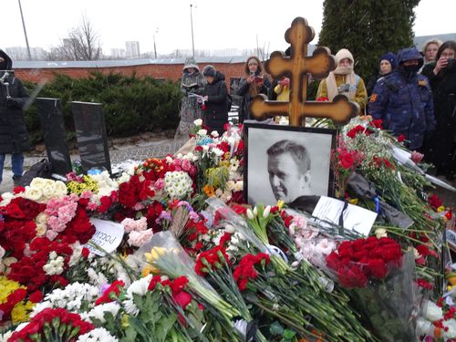 추모객들은 추위 속에서 약 50분을 기다리고 나서야 묘지 입구를 통과할 수 있었다. 나발니의 묘는 카메라 모양의 그림과 함께 '이 시설은 감시받는다'는 문구가 써진 입구 바로 앞에 자리 잡고 있었다.