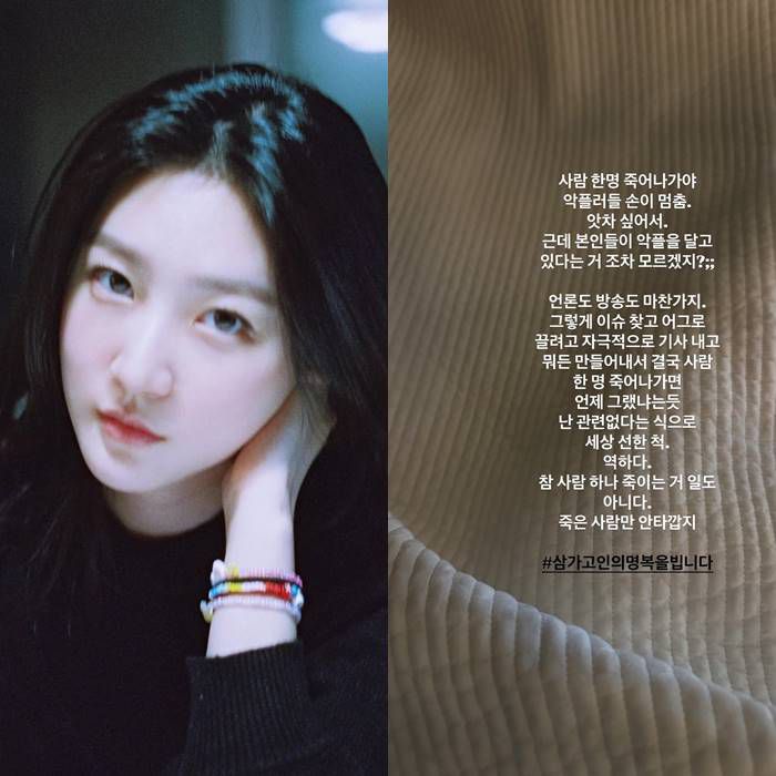 미교는 "참 사람 하나 죽이는 거 일도 아니다. 죽은 사람만 안타깝다. 삼가 고인의 명복을 빕니다"라고 애도의 뜻을 전했다.