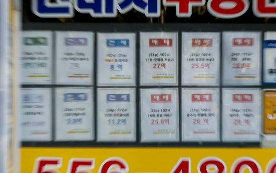 대출 규제 등의 여파로 아파트 거래가 위축되며 매물이 계속 쌓이고 있는 24일 서울 강남 한 부동산에 매매와 전세 매물 전단이 붙어 있다. 사진=강진형 기자 |