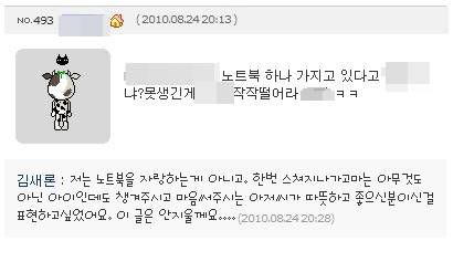 김새론은 "저는 노트북을 자랑하는 게 아니고 한번 스쳐 지나가고 마는 아무것도 아닌 아이인데도 챙겨주시고 마음 써주시는 아저씨가 따뜻하고 좋으신 분이신걸 표현하고 싶었어요. 이 글은 안 지울게요"라며 침착하게 대응해 화제를 모으기도 했다.