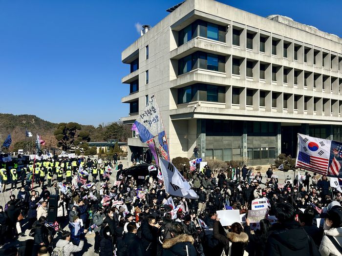 17일 서울 관악구 서울대 아크로폴리스 광장에서 탄핵 찬성 집회와 탄핵 반대 집회가 동시에 열리고 있다. [김송현 기자] |