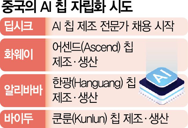 글로벌 인공지능(AI) 업계에 충격을 안긴 중국의 생성형 AI 개발사 딥시크가 자체 칩 개발을 검토한다. 미중 갈등으로 엔비디아의 최신 AI 칩 확보에 어려움을 겪는 상황에서 아예 자체 생태계를 구축하겠다는 시도다.