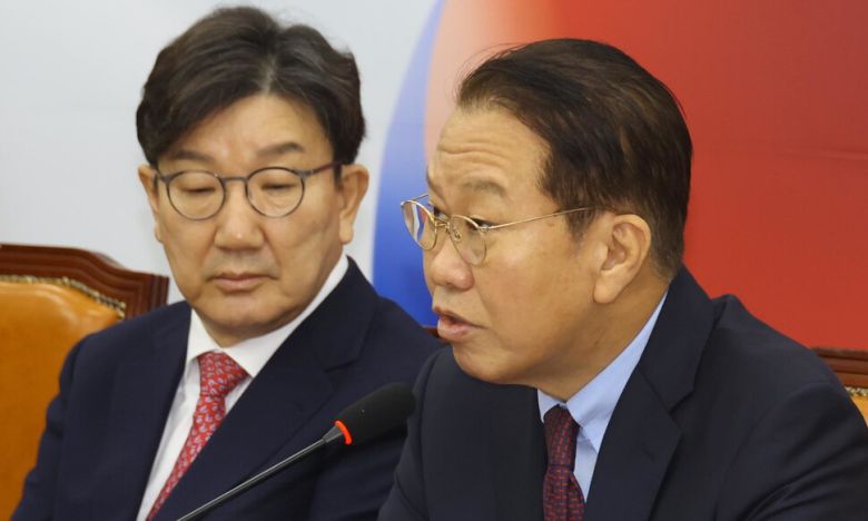 그는 이날 오전 열린 비상대책위원회의에서도 홍장원 전 국가정보원 1차장이 작성한 ‘체포 명단 메모’의 신빙성에 의문을 제기하며 “더불어민주당이 탄핵 사유에서 내란죄를 뺀 이유가 실제로 내란 행위가 없었기 때문 아니냐”고도 했다. 홍 전 차장이 메모를 작성했다는 시간에 공관이 아닌 국정원 청사 사무실에 있었다는 것을 폐회로티브이(CCTV)로 확인했다고 한 조태용 국정원장의 증언을 들어 “사실을 왜곡하고 증거를 조작해 없는 물증을 만든 것 아니냐는 의혹을 살 수밖에 없다”고 몰아간 것이다.